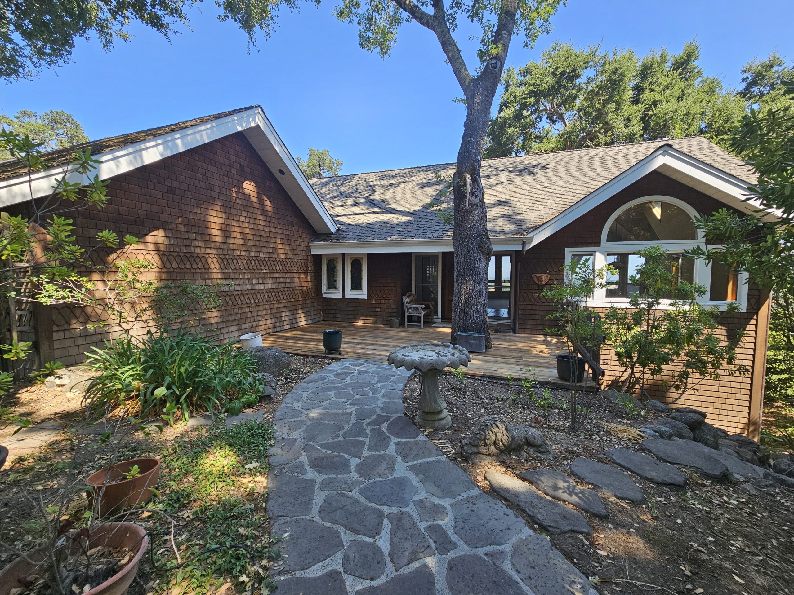 The lower-level features three generously sized bedrooms and a large deck, offering additional outdoor living space perfect for al fresco dining or soaking up the California sun. With ample driveway space and a 3-car garage, parking is always convenient on this 2/3-acre property.