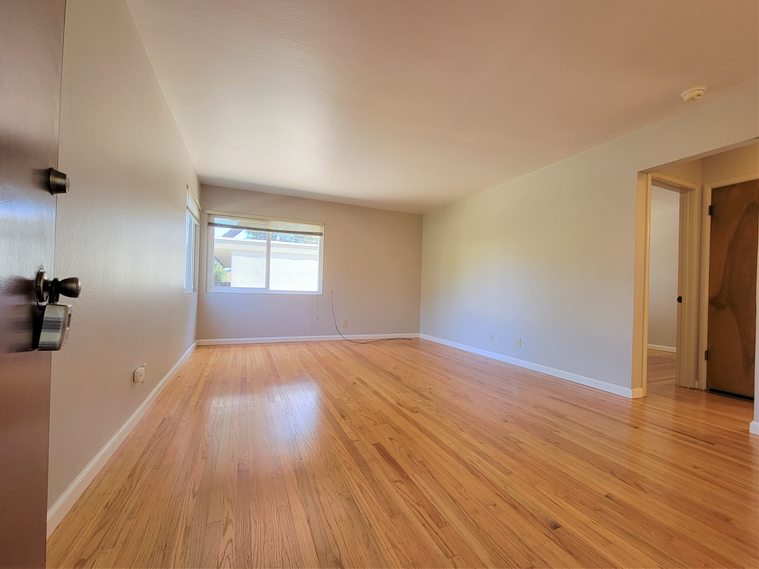This cozy one bedroom, one-bathroom, bottom floor unit in Menlo Park features newly installed hardwood floors, a spacious kitchen, and fresh paint throughout. This apartment has an open living and dining area off of the kitchen, central heating, 1 carport parking spot, and on-site laundry.