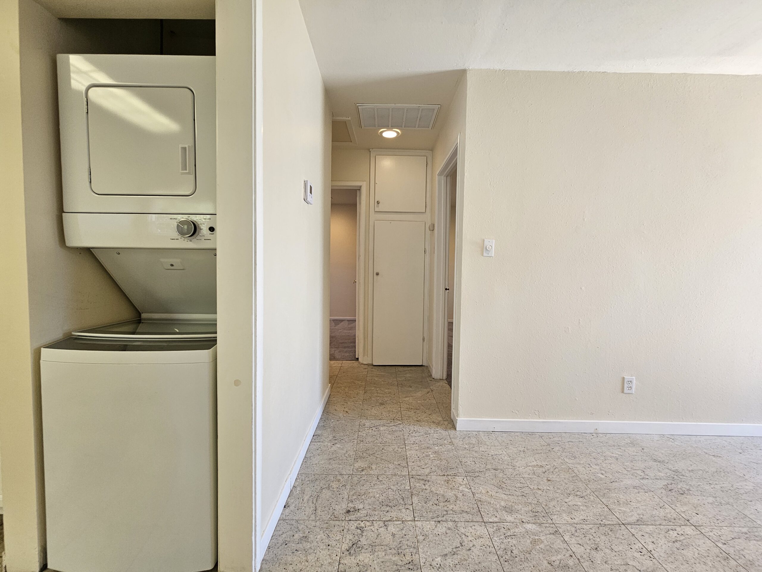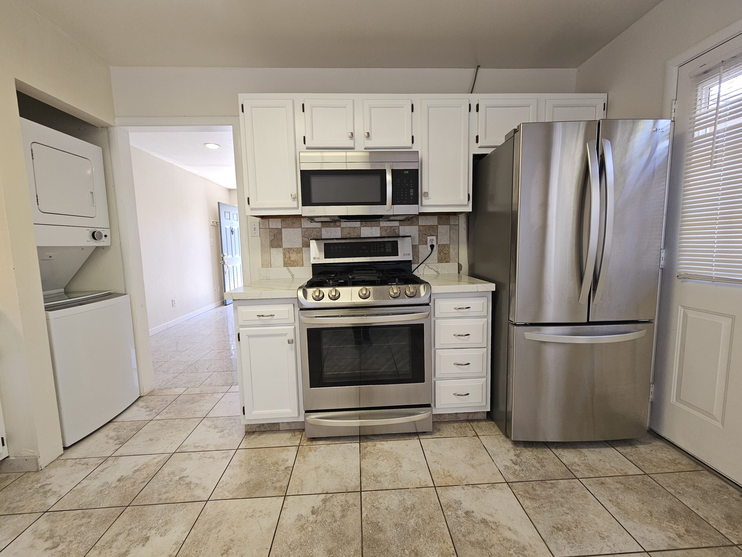 Enjoy outdoor living in your own private backyard. This tranquil space is perfect for morning coffee, evening relaxation, or hosting gatherings with friends and family. Convenience is at your fingertips with a stacked washer and dryer included in the unit.